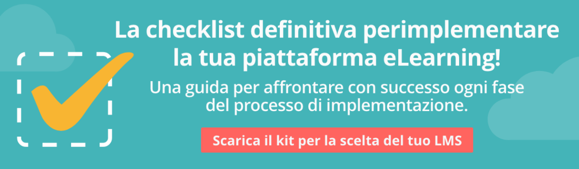 Abbiamo creato la checklist definitiva per aiutarti ad implementare con successo la tua nuova piattaforma eLearning. Iniziamo subito… e più tardi ci ringrazierai! 😘