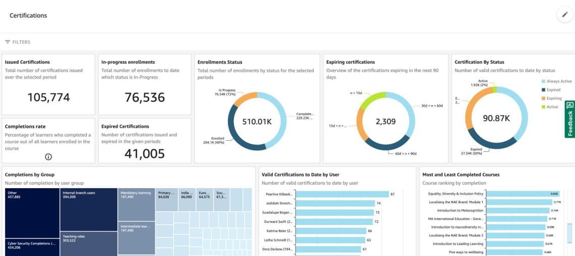 You could also run an analysis to understand the factors that influence learning engagement. Look at any differences that appear based on region, industry, team, size, and other variables. Plus, you should look for trends in your own internal teams: Do you have any standout performers? if so, you’ve identified an upskilling and knowledge-sharing opportunity. Talk to those teams about what they’re doing and capture those insights into a new learning resource.