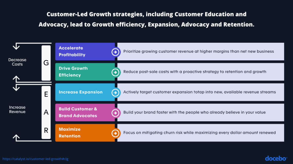 - Growth efficiency. Customer education programs can reduce post-sale costs or improve margin