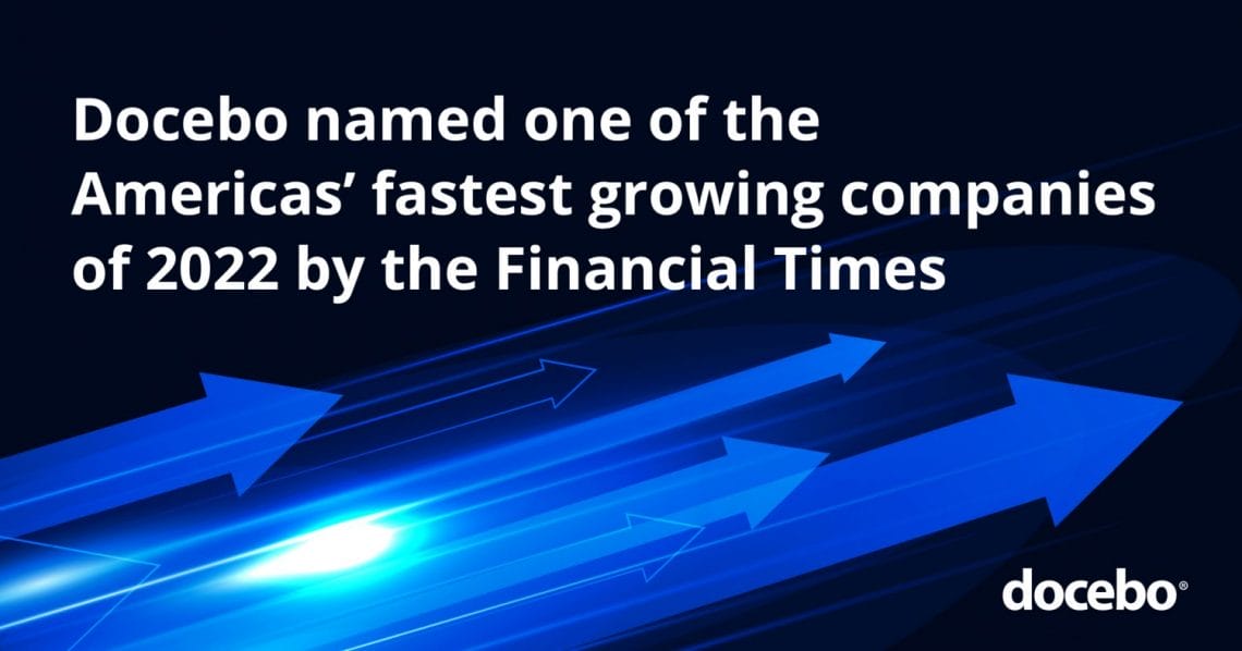 TORONTO, ONTARIO – April 7, 2022: Docebo Inc. (NASDAQ:DCBO; TSX:DCBO) (“Docebo” or the “Company”), a leading artificial intelligence (AI)-powered learning suite provider, announced today it is among 500 companies recognized in the third annual The Americas’ Fastest Growing Companies 2022. This prestigious recognition comes from leading business news publications, The Financial Times, and Statista Inc., the world-leading statistics portal and industry ranking provider.
