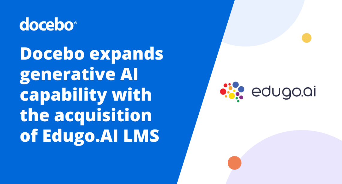 TORONTO, ONTARIO - June 12, 2023 - Docebo Inc. (NASDAQ: DCBO; TSX:DCBO) (“Docebo” or the “Company”), a leading learning platform provider with a foundation in artificial intelligence (AI) and innovation, announced today it has acquired Edugo.AI (“Edugo”), a Generative AI-based Learning Technology that uses advanced Large Language Models (LLM) and algorithms to optimize learning paths and adapt to individual learner needs. Docebo's acquisition of Edugo is focused on two main objectives: enhancing its existing AI capabilities and adding new capabilities to the Docebo platform to better serve its customers. Financial details were not disclosed.