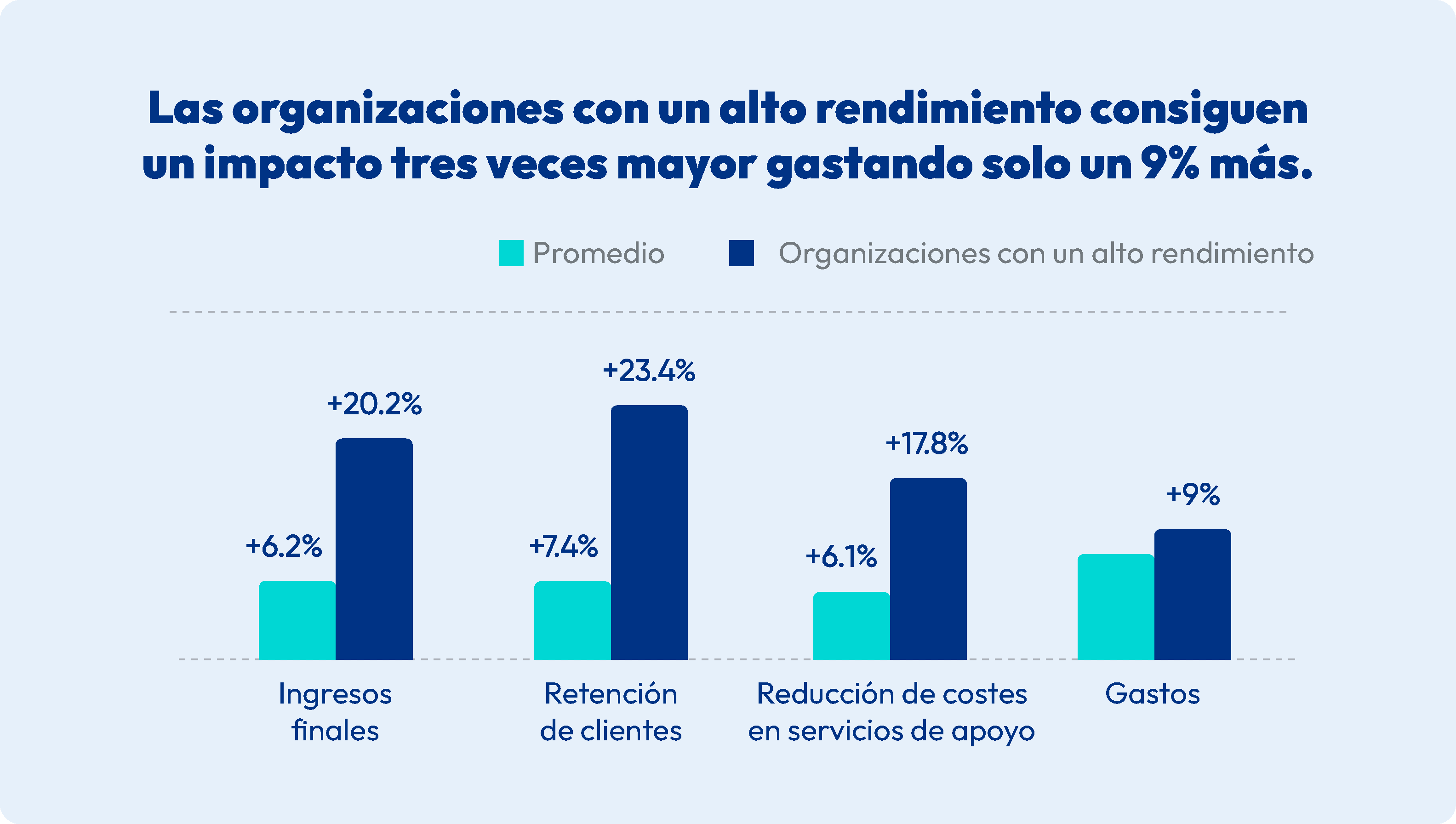 El quintil superior de los programas de formación de clientes obtiene unos resultados un 300% mejores gastando solo un 9% más. [Fuente: Forrester Consulting]