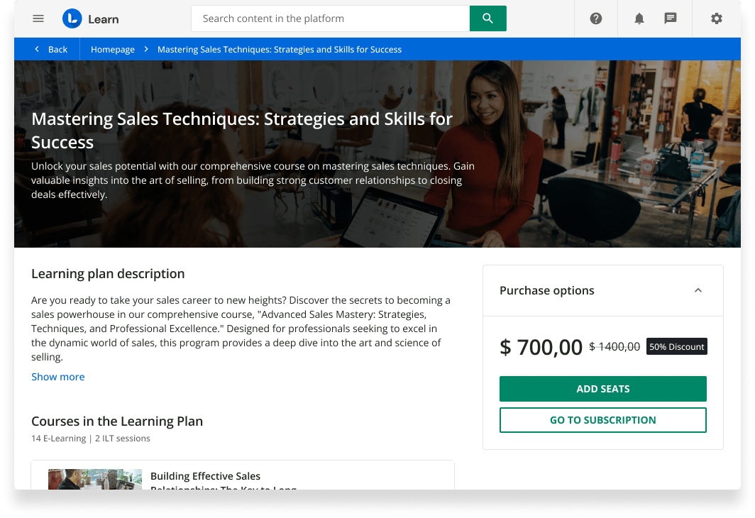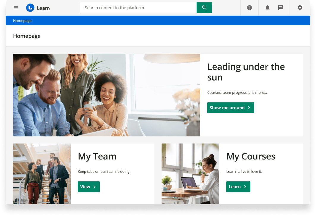 Erstellen Sie Lernprogramme, die das Engagement, die Produktivität, die Interessenvertretung und die Beziehung zu Ihren Kunden, Partnern und Mitarbeitern verbessern.