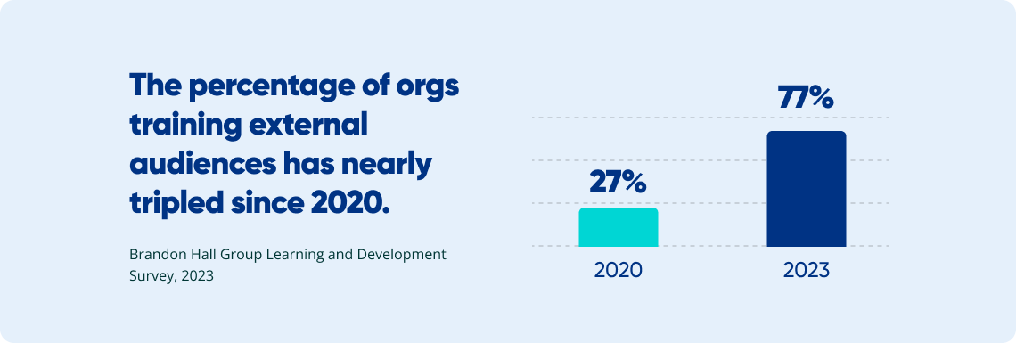 Customer education is exploding in popularity: The number of orgs training external audiences has nearly tripled since 2020.