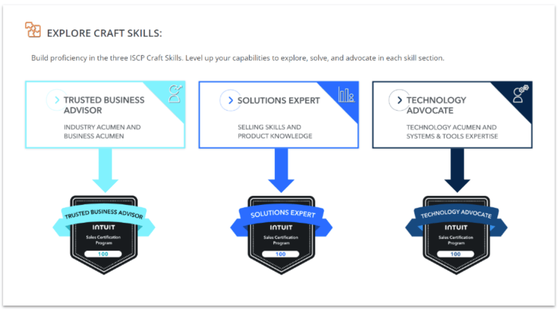 Intuit’s sales team certainly won’t feel bored or undervalued thanks to their internal sales certification program, with customized content and assessments targeting skills at multiple levels.