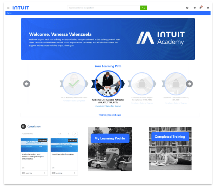 Through Intuit Academy, prospective employees have a pathway to becoming an Intuit expert. If someone gets hired, any skills they obtain are integrated into a personalized profile for the internal learning program.