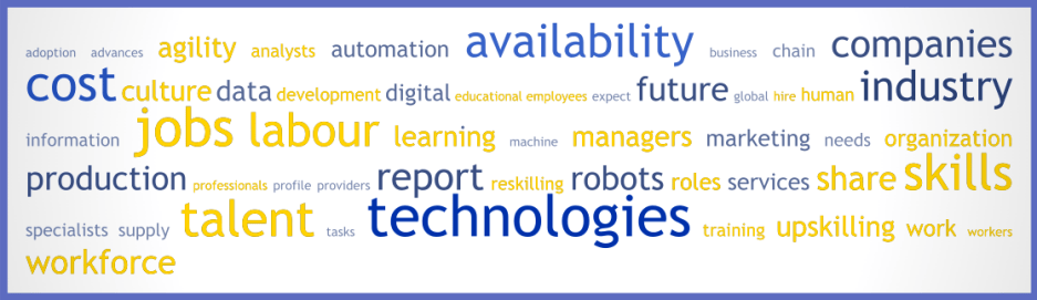 (Word size depends on its frequency, yellow terms being those directly related to people/HR/learning)